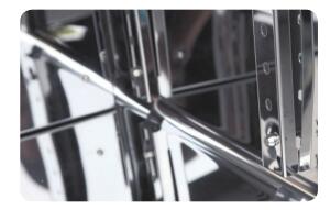 擱板具有防鎖功能,擱板在抽出一半時將鎖定,避免出現擱板直接滑下造成損失;