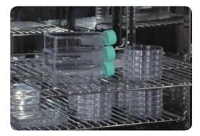 紫外燈位于箱體內上壁,可定期對箱體內進行內部消毒,有效殺滅箱體內循環空氣中的浮游菌,從而有效防止細胞培養期間的污染;