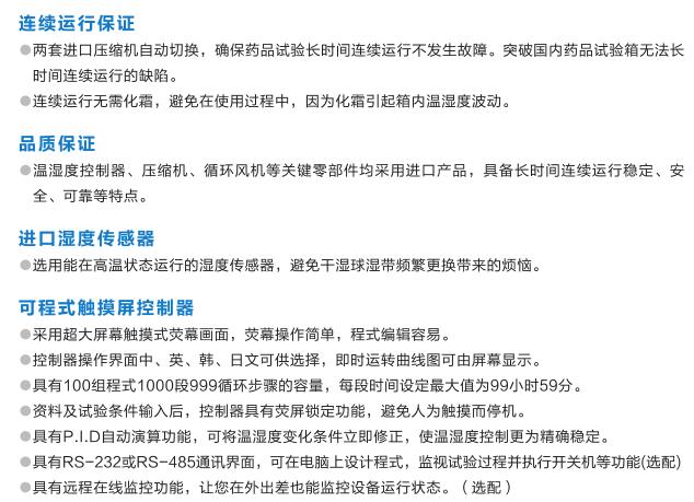 以科學(xué)的方法創(chuàng)造一個(gè)對藥品失效評測需長時(shí)間穩(wěn)定的溫度、濕度環(huán)境和光照環(huán)境,適用于制藥企業(yè)對藥品及新藥的加速試驗(yàn)、長期試驗(yàn)、高濕試驗(yàn)和強(qiáng)光照射試驗(yàn)。