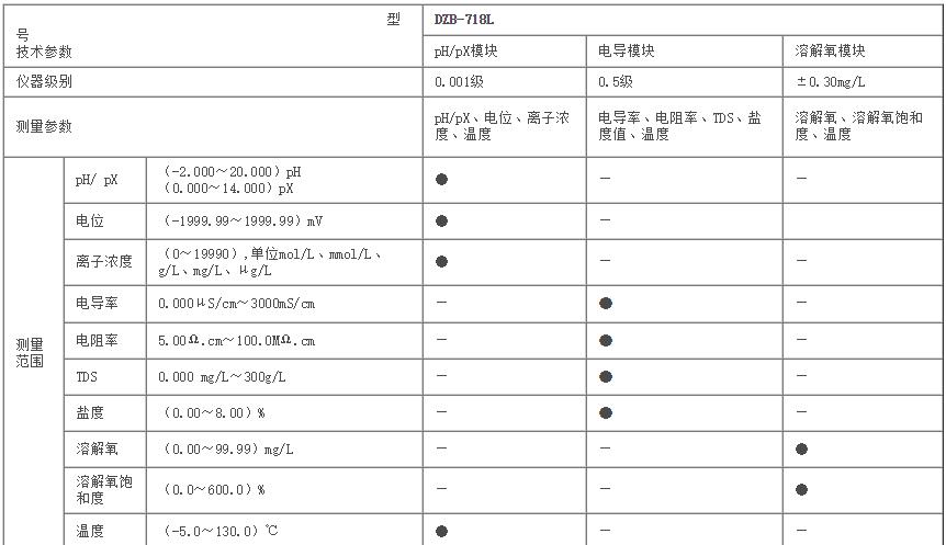 DZB-718L型便攜式多參數分析儀是一款集合pH計、電導率儀、溶解氧儀和離子計為一體的多模塊多功能一體機,用戶可根據自己的需求選擇對應測量參數和測量功能的儀器。