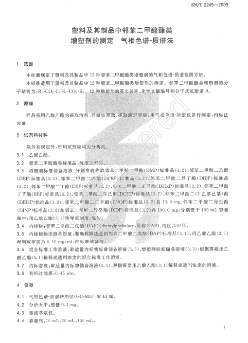 塑料及其制品中鄰苯二甲酸酯類增塑劑的測定 氣相色譜-質譜法