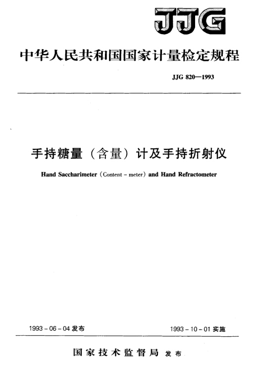 手持糖量 (含量)計及手持折射儀的檢定規程