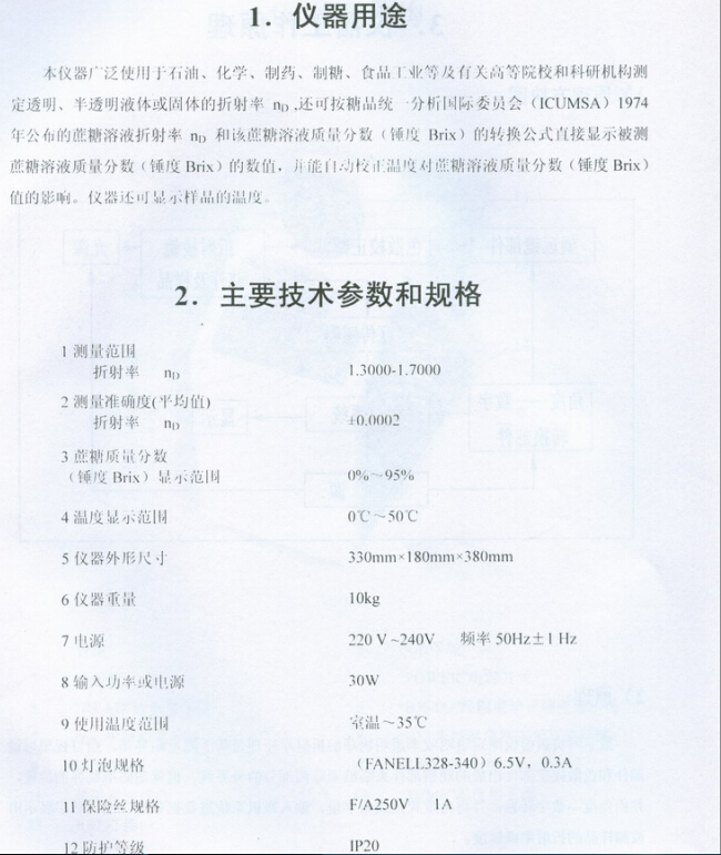 上海儀電物光WYA-2S數字阿貝折射儀使用說明書