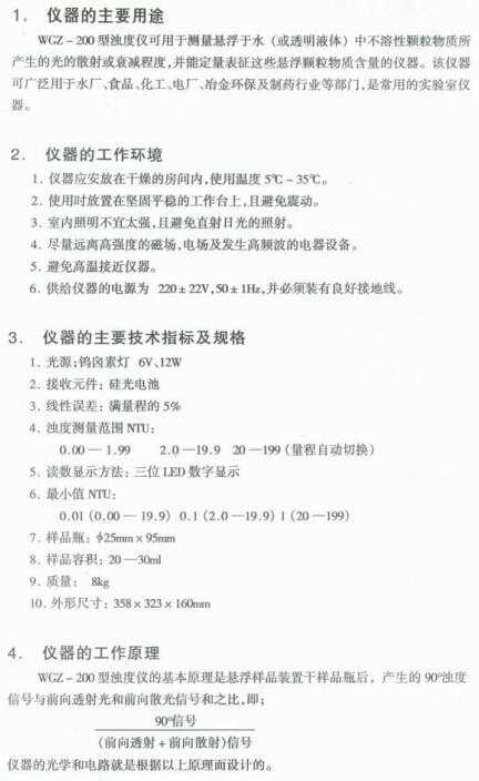 WGZ-200 濁度計(儀)使用說明書