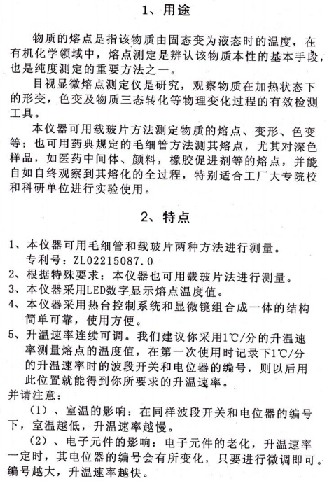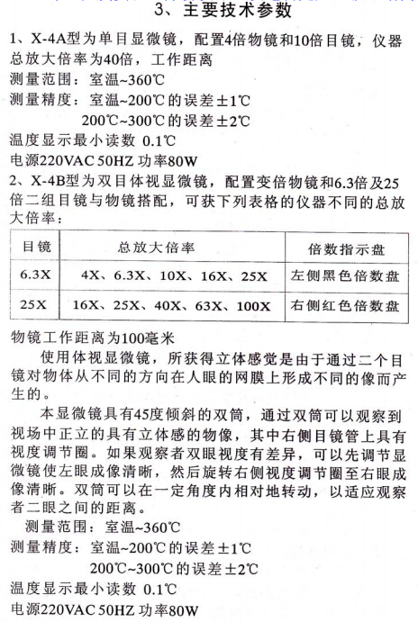 SGW®X-4A、SGW®X-4B顯微熔點(diǎn)儀使用說明書