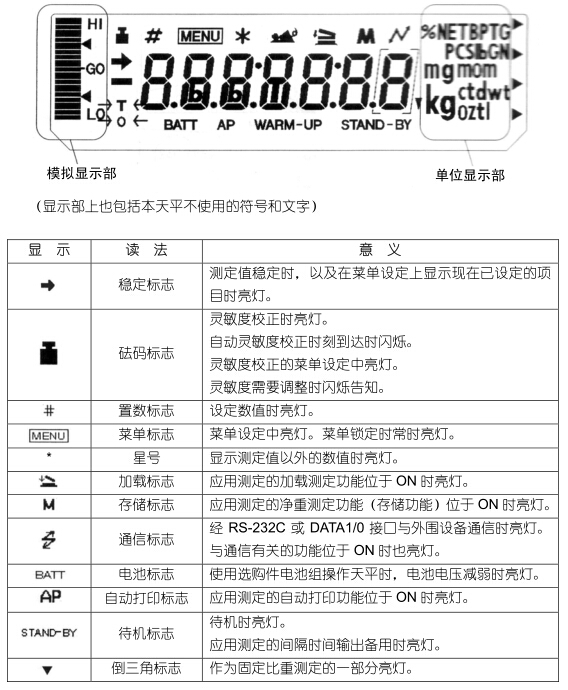 AUW 系列在顯示部備有背燈,出廠時設定在 OFF。(背燈 ON 時,不顯示待機,而須在 g 等質量顯示下進行設備預熱)。
