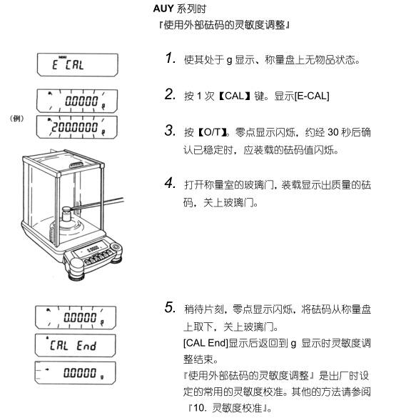 為了準確地進行測定,在移動天平時,如果設置場所的氣溫有變化,請重新進行靈敏度調整。最好采用 PSC 或定時器校準功能,自動地進行必要的靈敏度調整。