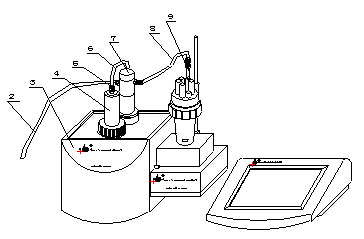 a 將容量滴定單元(3)與和控制單元放在試驗臺上,按圖示將攪拌器(15)放在電導測量單元(16)上, 插入電極梗(10);裝入溶液杯支架(12)和溶液杯(13),在溶液杯(13)中放入攪拌珠(14),并用緊定螺釘(11)分別瑣緊攪拌器(15)和溶液杯(13)。