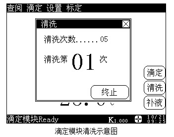 滴定結束,儀器會自動關閉攪拌器,并將控制滴定模塊補液到底,之后,儀器將回到查閱狀態(見查閱滴定數據部分)。
