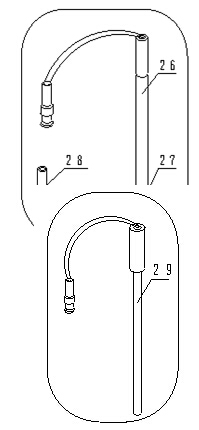 d 插入T―818―B―6型溫度傳感器(29),拔去E―201―C―9型pH復合電極(26)上的電極套(27),然后插入E―201―C―9型pH復合電極(26),將輸液管(2)放入貯液瓶的底部。