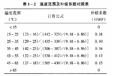 COEF為隨溫度變化的補(bǔ)償系數(shù),根據(jù)表1-1,COEF的取值見表1-2。