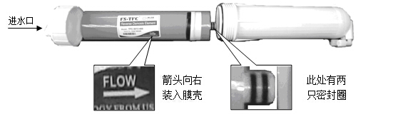 2:出于節省的考慮,RO組件失效時,可先將第二級的RO組件接到第一級的位置,將新的RO組件接在第二級的位置,延長RO組件使用壽命。安裝時,上方為第二級,下方為第一級。若水質仍超標,再全部更換。