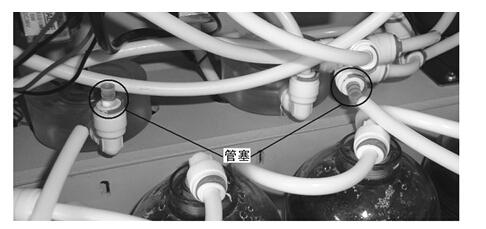 取下上圖中圓圈內藍色卡扣,按住接頭白色套圈,即可拔出如圖所示位置的兩只管塞。