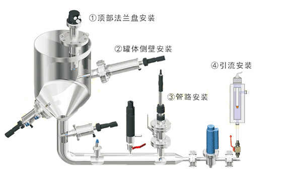 電極的安裝對測量非常重要,合理的安裝不僅使得測量更加可靠,而且便于以后的維護。下圖的幾種安裝方式,只有余氯和二氧化氯電極需要引流式安裝,其余的測量電極幾乎都可以采用下面的幾種方式進行安裝。