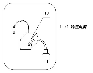 d. 穩(wěn)壓電源(13)輸出插頭插入電源插座(4)內(nèi)。然后,接通穩(wěn)壓電源的電源,儀器可以正常操作。