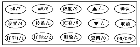 儀器有五種工作狀態(tài)。即pN測量、mV測量、濃度測量、設(shè)置、校準(zhǔn)。儀器各工作狀態(tài)可通過相應(yīng)的鍵進(jìn)行切換。