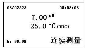 按下“ON/OFF”鍵,儀器自動進(jìn)入pN測量狀態(tài)。儀器顯示如下界面: