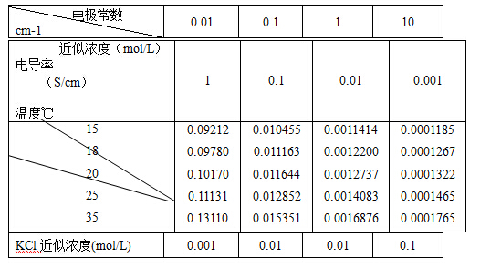注:測量高電導率時,一般采用大常數的電導電極,當電導率≥10000μS•cm-1時,采用常數10的電導電極。