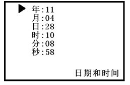 當光標“▶”指日期和時間設置參數項時,按“確定”鍵,儀器顯示界面如下: