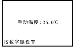 當光標“▶”指手動溫度設置參數項時,按“確定”鍵,儀器顯示如上。通過“數字”鍵設置手動溫度值。然后,按“確定”鍵予以確認,設置完畢,按“取消”鍵退出手動溫度設置狀態,儀器進入設置參數狀態。手動溫度設置范圍(0.0~135.0)℃。