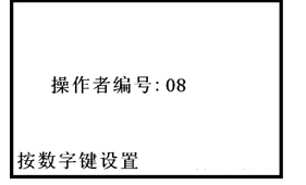 當光標“▶”指操作者編號設置參數項時,按“確定”鍵,儀器顯示如下。用戶通過“數字”鍵設置操作者編號,編號范圍(0~99)。再按“確定”鍵予以確認,確認完畢按“取消”鍵,儀器返回操作者編號設置狀態。