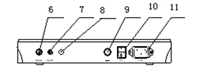 (7) 使用金屬電極測量電極電位時,用帶夾子的Q9插頭,Q9插頭接入測量電極插座(6)處,夾子與金屬電極導線相接;或用電極轉換器,電極轉換器的一頭接測量電極插座(6) 處,金屬電極與轉換器接續器相連接。參比電極接入參比電極接口(7)處。
