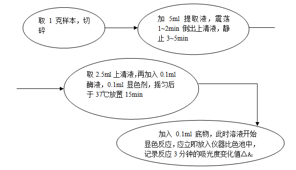 樣品測試:先于試管中加入2..5ml樣品提取液,其它操作與對(duì)照溶液測試相同,記錄反應(yīng)3分鐘的吸光度變化值ΔAt