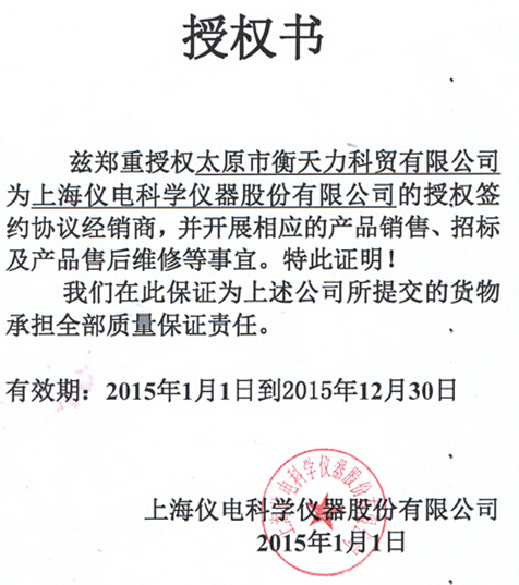 太原衡天力是上海雷磁簽約協(xié)議經(jīng)銷商,授權(quán)書如下: