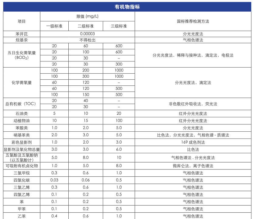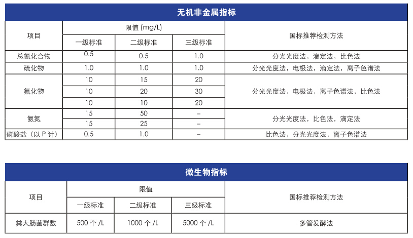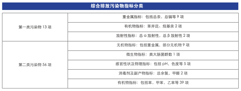 該標準按照污水排放去向,分年限規定了 69 種水污染物最高允許排放濃度及部分行業最高允許排水量。 按照國家綜合排放標準與國家行業排放標準不交叉執行的原則執行。