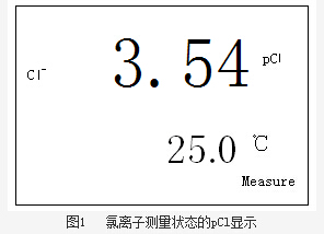按以上過程操作后,如將電極系統放入不同的樣品溶液(注:樣品溶液和標準溶液一樣,含等量的離子強度調節劑)中,顯示屏主顯示值會顯示不同的pCl值。