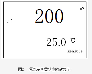 在測氯離子測量狀態下,按▲/切換鍵,圖1可切換到圖2(測mV)