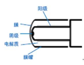 原電池式的兩個極由兩種不同的能自發極化產生電壓的金屬構成。由于原電池式的電壓是自發產生而不是外界提供的,因此原電池式電極使用時無需極譜式電極極化所需的“預熱”。