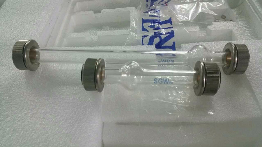 圖中的玻璃管叫旋光管,兩種規(guī)格,100mm和200mm,中間鼓出來(lái)的是把溶液中的氣泡趕到里面,以免影響光路。