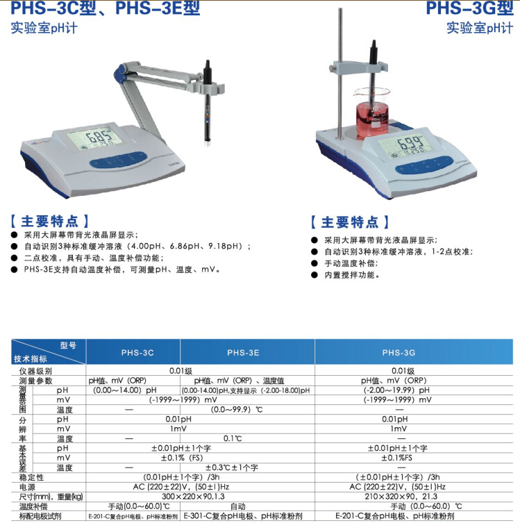 每個產(chǎn)品型號及圖片、有哪些特點?技術(shù)參數(shù)是什么?標配的電極和試劑是什么?