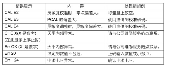 錯誤顯示和處理措施一覽表