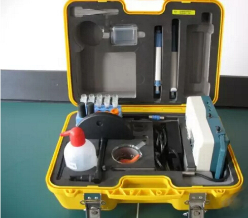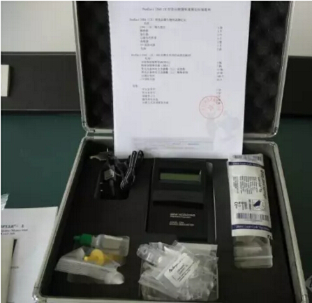 如圖所示為黃顏色的箱子,這個檢測箱的主要配置有多功能食品安全快速測定儀主機、浸入式光纖探頭、支架、移液槍、試管及試管架、洗瓶、洗耳球、鑷子等。