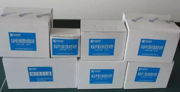 配備了很多試劑盒,可以檢測的項目包括:注水肉檢測試紙、碘鹽含碘量速測液、硼砂速測盒、食用油酸價速測卡、食醋中總酸快速測定試液包、食醋中游離礦酸速測試紙、假冒味精速測盒、大米新鮮度檢測試劑盒、肉及內臟中鹽酸克倫特羅快速檢測卡、蘇丹紅快速檢測試劑盒、豆漿生熟度檢測試劑盒、水樣中孔雀石綠篩查柱、食用油中桐油、大麻油、巴豆油、礦物油鑒別試劑盒、毒鼠強鑒定試液包、鼠藥安妥定性試紙、砷、汞檢測試劑等。