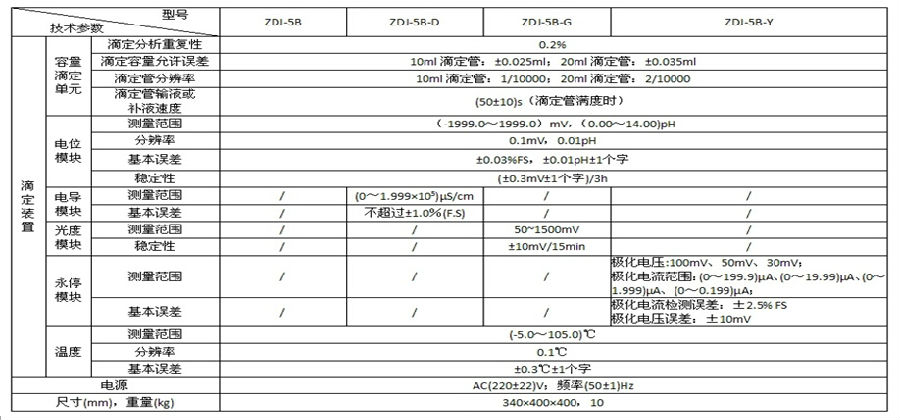 三、上海雷磁ZDJ-5B自動電位滴定儀技術參數