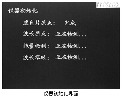 在第一次使用儀器前,先按儀器附件備件清單檢查儀器的所有附件備件。在使用之前應先確認儀器的工作電源,將打印機連接至主機,檢查儀器樣品室應無有遮擋光路的物品。確認后先開啟打印機的電源,然后開啟主機電源。顯示如下: