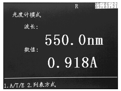 在主菜單選擇“1”按“確認”鍵后進入“光度計模式”,界面如下: