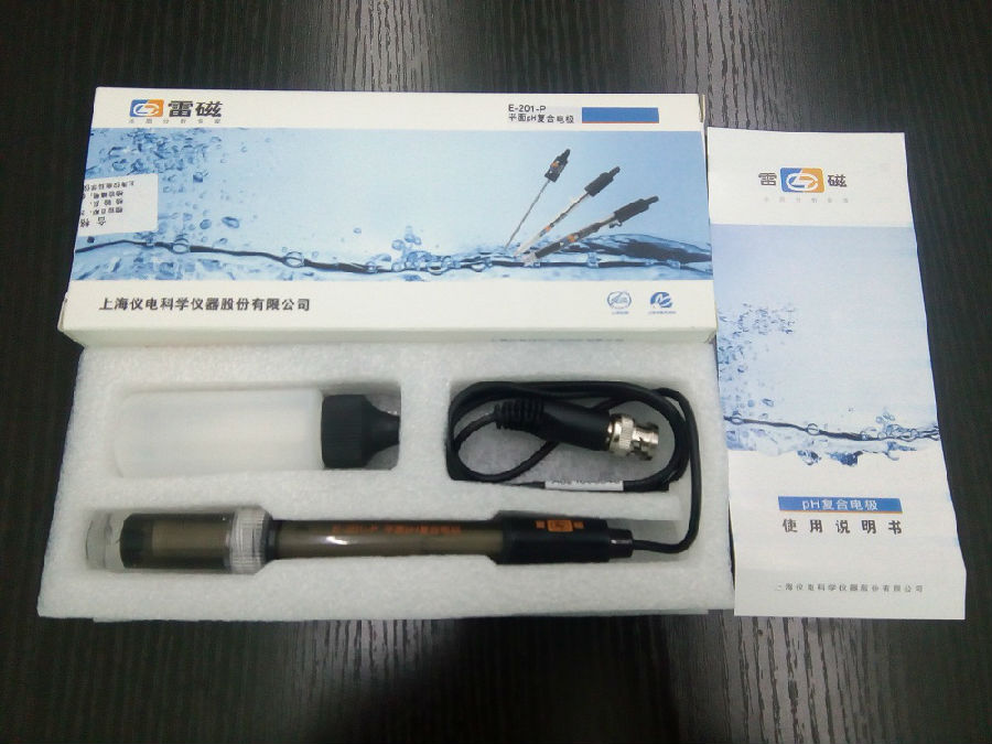 E-201-P型是由平端pH玻璃電極和參比電極組合在一起的特殊pH復合電極,主要使用在實驗室條件下測定紙和紙板表面的pH值以及被測溶液量比較少的情況�?梢詼y量肉類如豬肉的ph值。