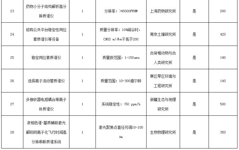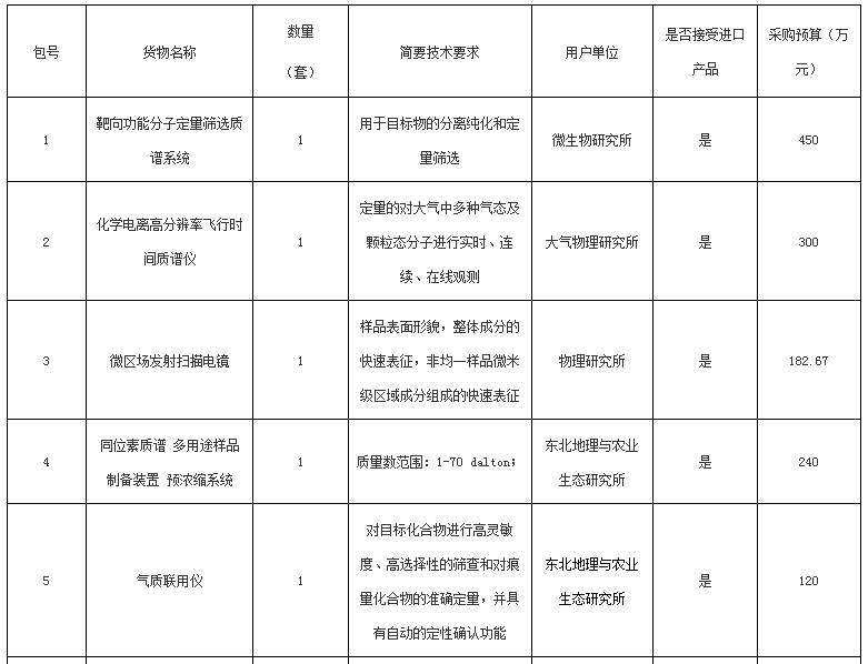 本次招標共28包,有22個研究院參與,主要涉及質譜和顯微鏡。為了落實促進中小企業發展和鼓勵采購節能環保產品政策,本次招標對是否進口沒有要求。