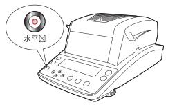本水分儀依靠主機(jī)底面后部中央的固定點(diǎn)(1點(diǎn))和前方左右兩個水平調(diào)節(jié)支腳(2點(diǎn))維持水平。根據(jù)水平儀狀態(tài)判斷裝置是否水平。