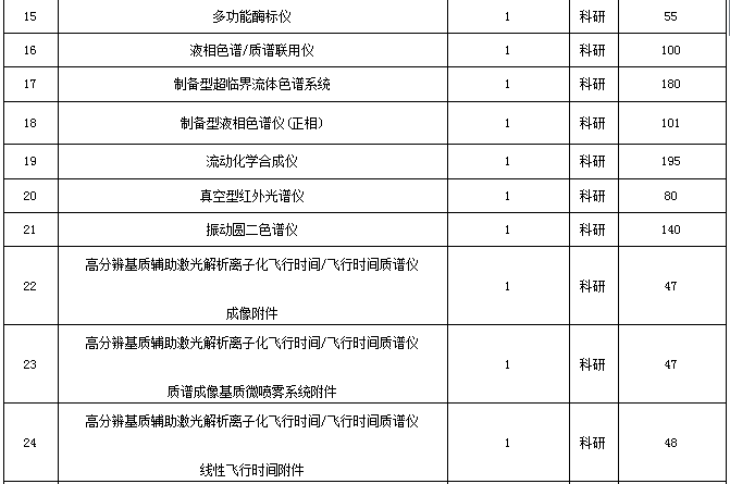 此次采購項目包含24臺/套儀器設備,其中質譜相關儀器6臺/套,液相色譜相關儀器3臺/套,顯微鏡相關儀器2臺/套,此次招標可謂是近期儀器采購項目中的又一大單。