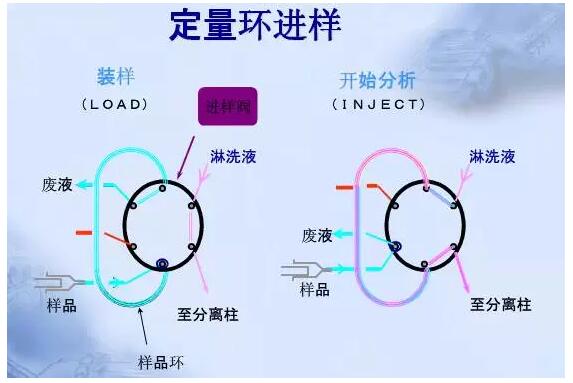 1、手柄位進樣(Load)位置時,樣品經微量進樣針從進樣孔注射進定量環,定量環充滿后,多余樣品從放空孔排出;