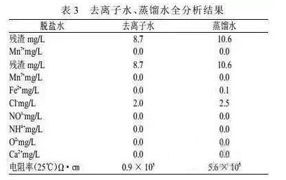 用離子交換法制得的化驗用水,常稱去離子水或離子交換水。出離子水質高于蒸餾水塔蒸餾出的蒸餾水水質,僅含0.01mg/L的溶解型溶質(水的電阻率為9.0·㎝)。詳見(表3)所列。