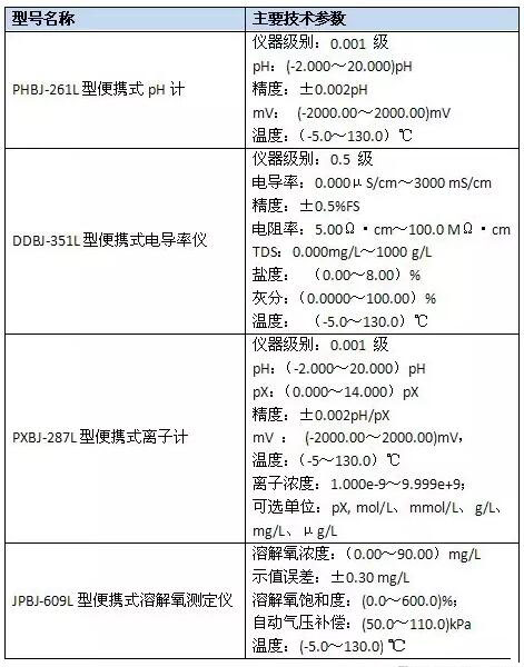 我們本次推出了四款便攜式引領版系列儀表,分別是PHBJ-261L型便攜式pH計、DDBJ-351L型便攜式電導率、JPBJ-609L型便攜式溶解氧測定儀、PXBJ-287L型便攜式離子計。