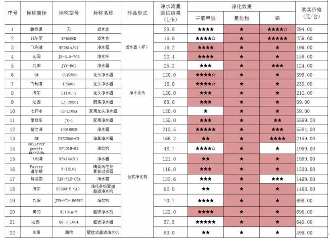 注:此次參加測試的40款凈水器產品均為合格產品。