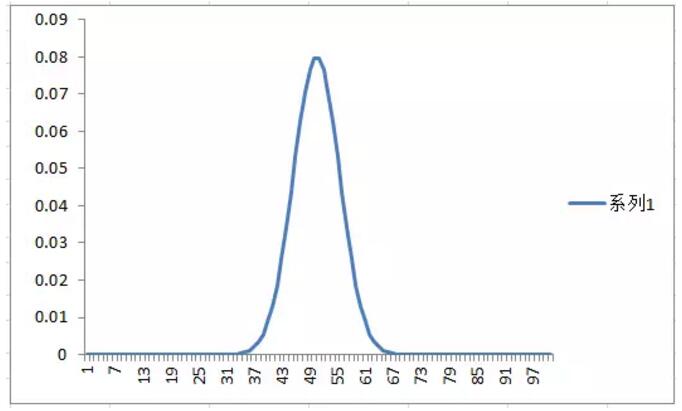 這個時候,第199和200行,就是色譜柱進了99塔板體積的載氣后,色譜柱內組分的分布情況。讓我們選中199行,點菜單“插入\圖表”,然后點“折線圖”,然后點“完成”。此時你應該看到了一個色譜峰了,非常完美的高斯分布曲線。