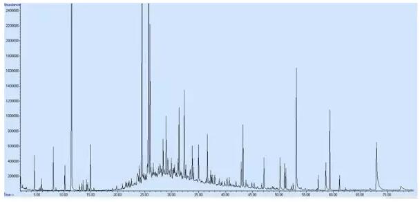 在20-40分鐘一堆連峰,是一些來至基質(zhì)的烷烴化合物的干擾,里面也有少量香氣化合物,可以利用Amdis來找出了。